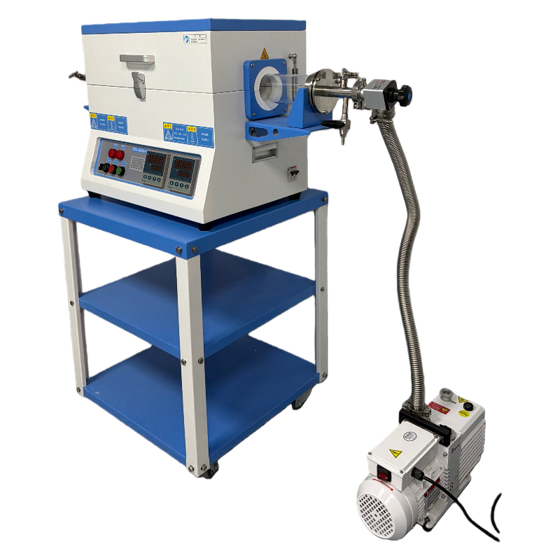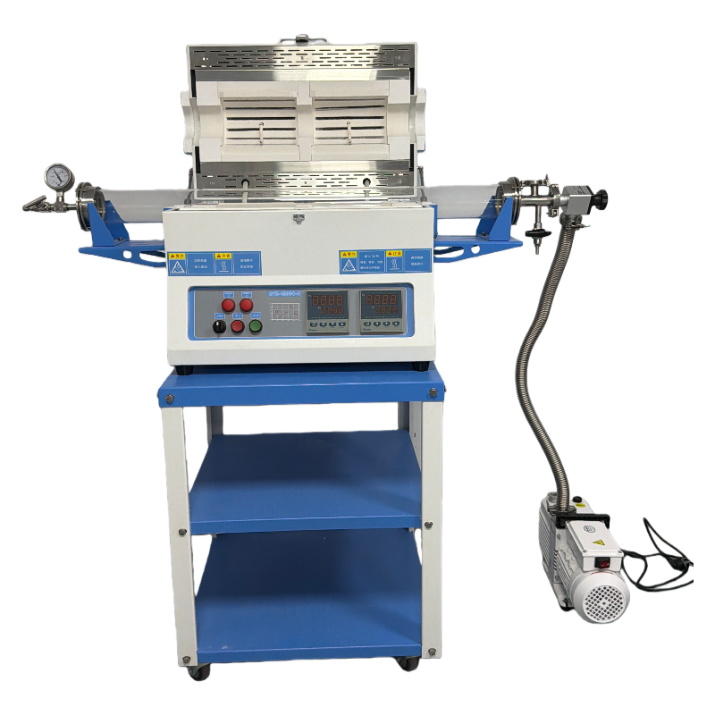?爐體結構配有一對不銹鋼密封法蘭,采用硅膠密封圈密封石英管口徑可選:φ25;φ50 ;φ60;φ80 φ100石英管的設備設有法蘭支架;真空度:10-2torr(采用機械泵)安裝有一機械壓力表,測量范圍為-0.1~0.15MP 。