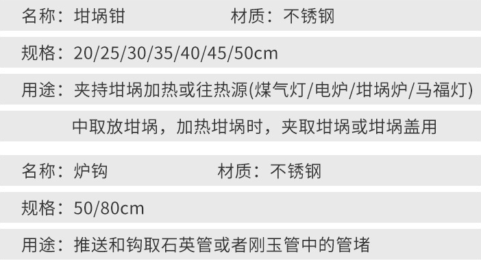 產品概述:高品質不銹鋼坩堝鉗、爐鉤