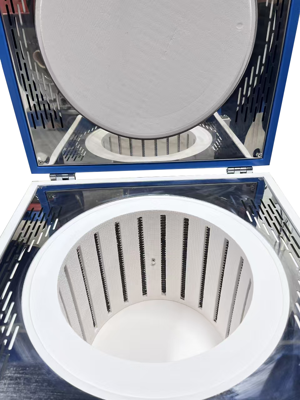 ?爐體結(jié)構(gòu):上開(kāi)門(mén)式爐門(mén)結(jié)構(gòu),方便取樣;采用雙層殼體結(jié)構(gòu),并帶有風(fēng)冷系統(tǒng);爐膛采用高純氧化鋁纖維材料,最大程度的減少能量損失;內(nèi)爐膛表面涂有美國(guó)進(jìn)口的高溫氧化鋁涂層,可以提高反射率及設(shè)備的加熱效率,同時(shí)也可以延長(zhǎng)儀器的使用壽命,有過(guò)熱和斷偶保護(hù),并設(shè)有開(kāi)門(mén)斷電功能;在爐底安裝耐火磚,可以防止?fàn)t襯磨損。