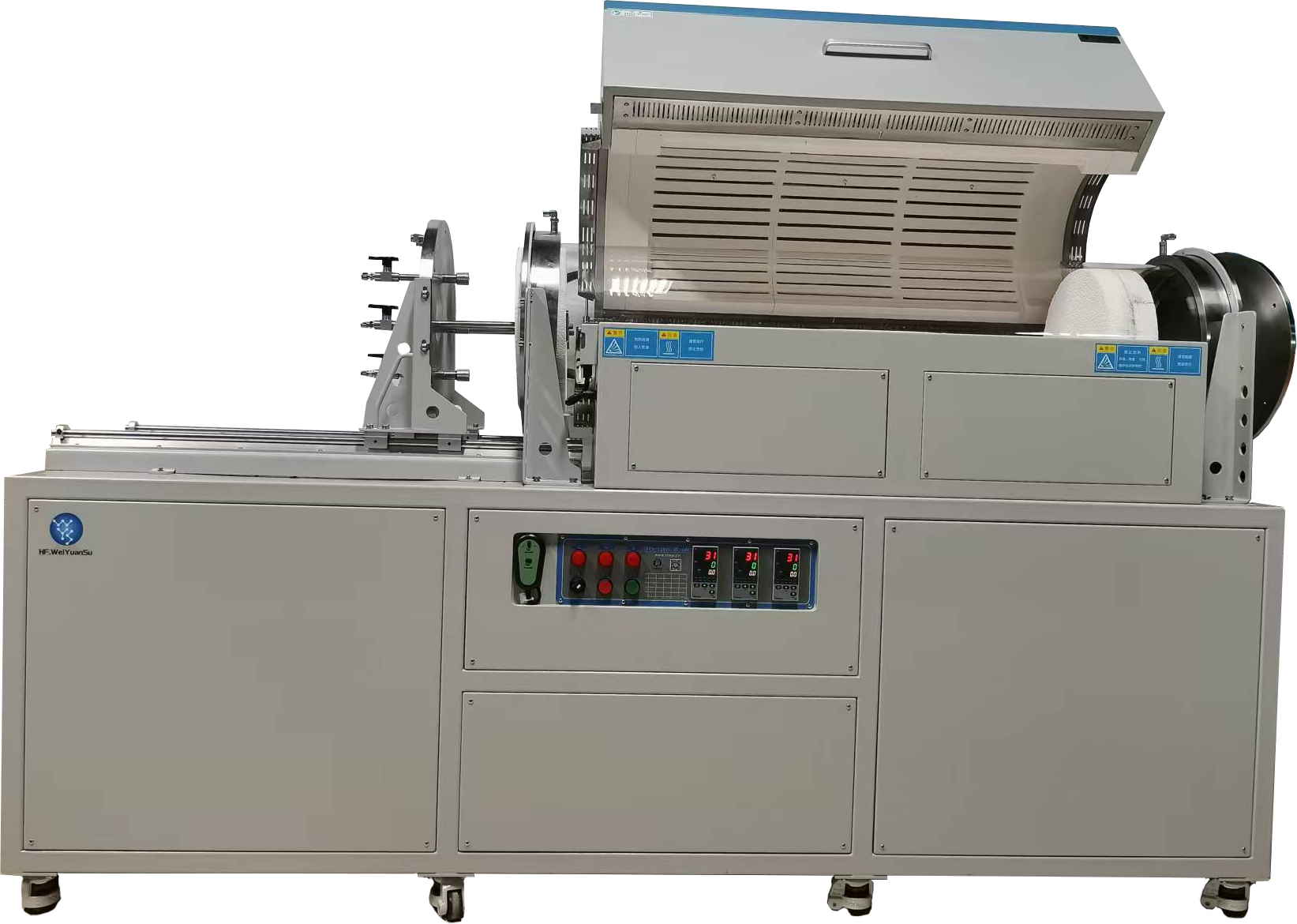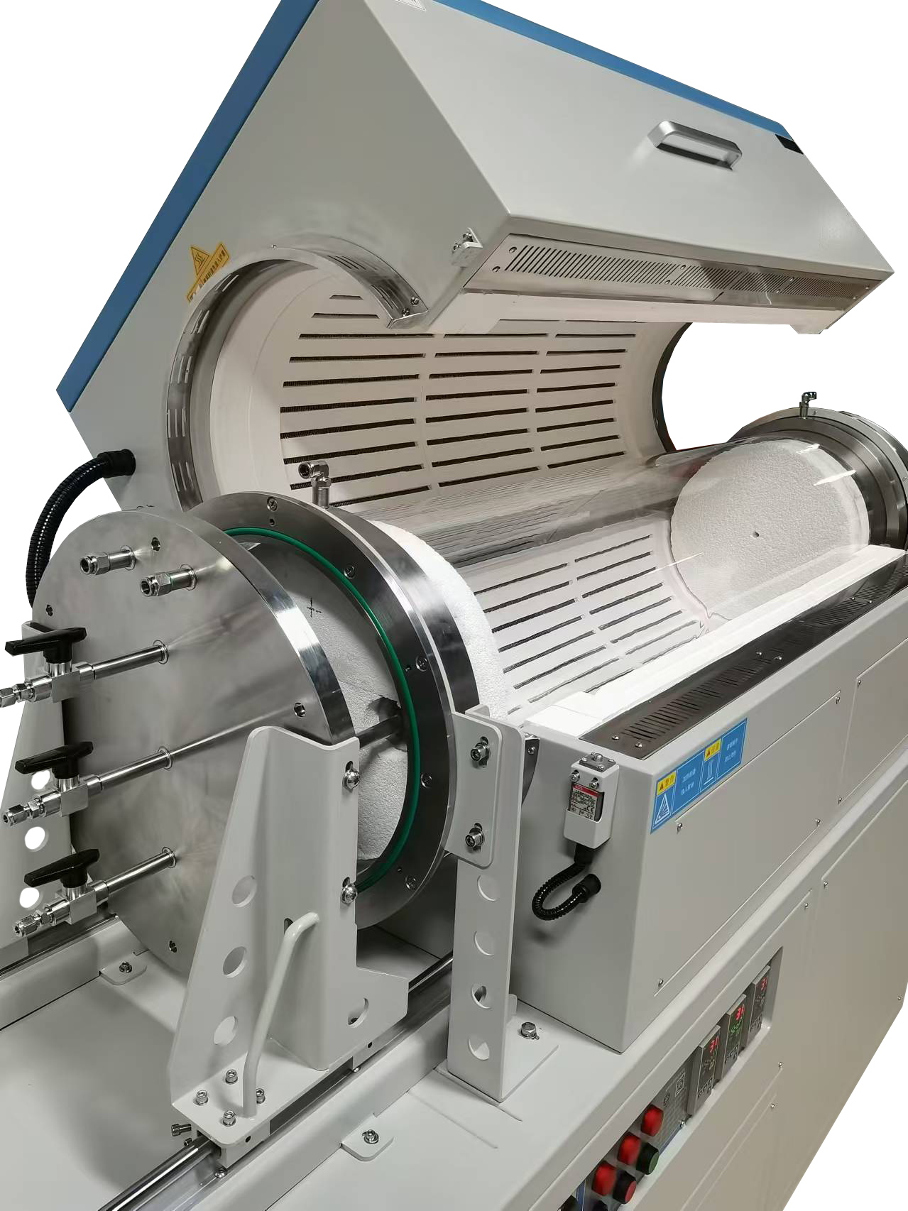 爐體結構 | ?采用雙層殼體結構并帶有風冷系統; ?爐膛材料采用高純氧化鋁纖維,能最大程度減少能量損失; ?爐膛升級采用更密集的電阻絲結構,使得大管徑的爐膛,溫場均勻性和保溫性能更好; ?上開門設計為電動升降輔助,確保人員安全使用; ?設有開門斷電功能,提高使用的安全性; ?加熱爐與溫控系統做成分體式結構; ?電控部分設計為獨立電控箱。 |